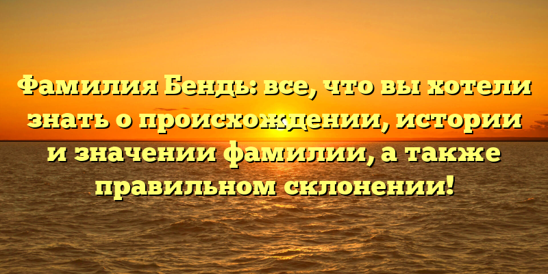 - Фамилия Бенд: происхождение, история и значение, а также правила склонения — полный гид для любопытных и генеалогов.