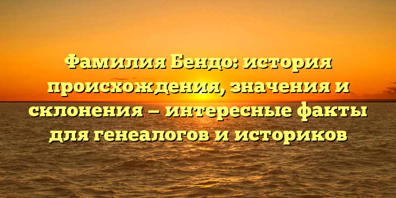 - Раскрываем тайны происхождения и значения фамилии Бендо: исторические факты, склонения и интересные открытия для генеалогов и историков.