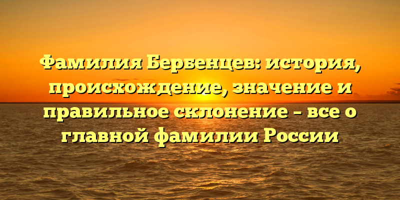- Фамилия Бербенцев: происхождение, история и правильное склонение – узнайте все о самой значимой фамилии в России