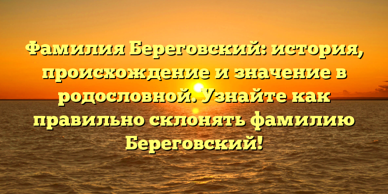 Фамилия Береговский имеет богатую историю и множество вариаций в своем написании. Но как правильно склонять эту фамилию и откуда она происходит?