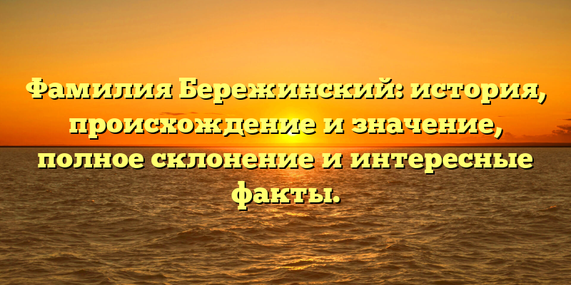 - История Фамилии Бережинский: происхождение и значение, склонение и любопытные факты, которые вы никогда не знали!