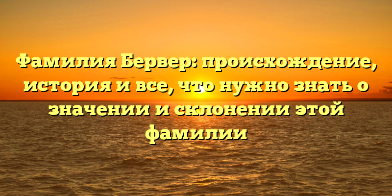- Исследование фамилии Бервер: происхождение, история и уникальные факты для знакомства с этой фамилией