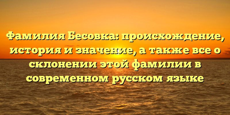- Фамилия Бесовка: история возникновения, значения и правильное склонение в современном русском языке