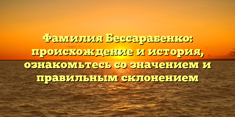 - Фамилия Бессарабенко: история происхождения, значение и правильное склонение — узнайте все с нами!