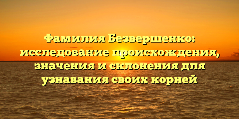 - Фамилия Безвершенко: исследование происхождения и значения для раскрытия своих родовых корней