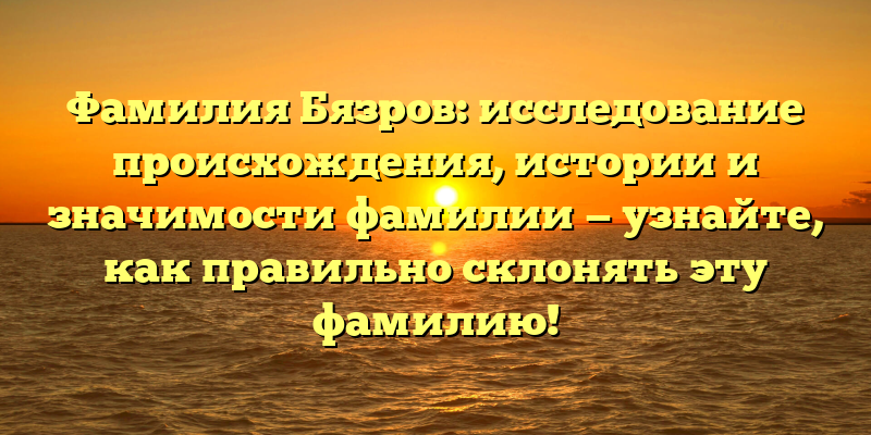 - Исследование происхождения и истории фамилии Бязров: Значимость и правильное склонение.
