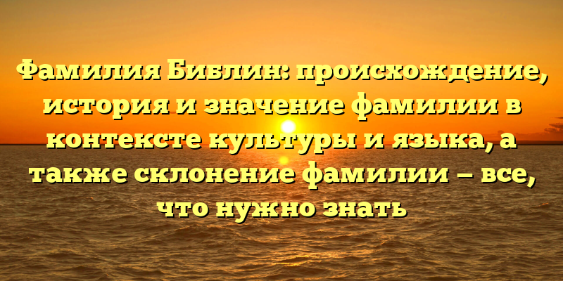 Фамилия Библин: происхождение, значение и особенности склонения в аспекте культуры и языка