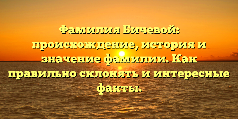 - Фамилия Бичевой: происхождение, история и значение – все, что вы хотели знать! Узнайте, как правильно склонять и узнайте интересные факты.