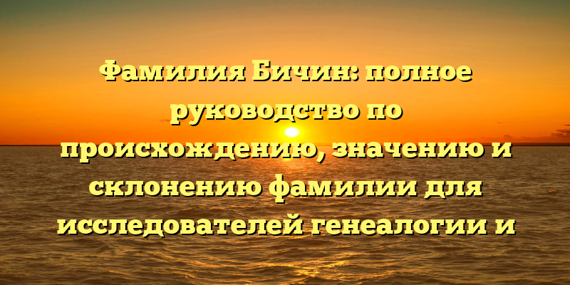 - Полное руководство по исследованию фамилии Бичин: происхождение, значениe и склонение для генеалогических изыскателей и поклонников истории