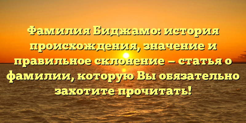 - Фамилия Биджамо: происхождение, значение и правильное склонение – узнайте все о своей фамилии и ее истории!