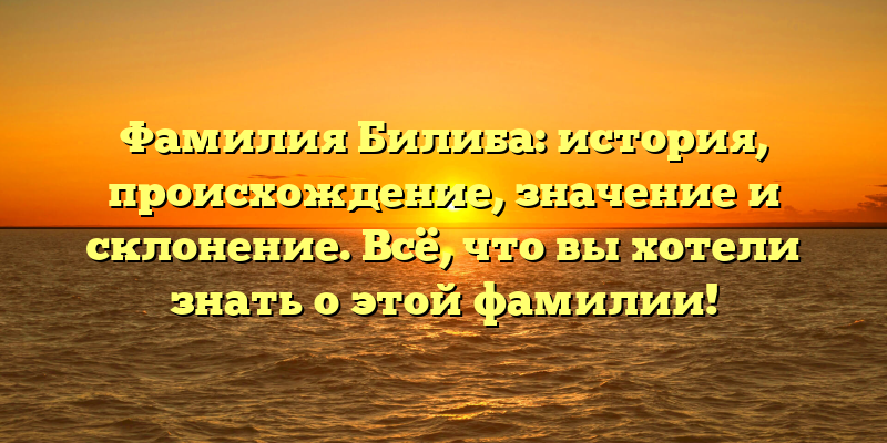 Узнайте всё о фамилии Билиба: история, происхождение, значение и правильное склонение в одной статье!