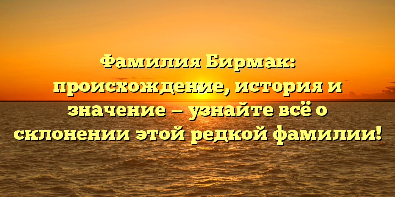 - Фамилия Бирмак: исследуем происхождение и историю, изучаем значение и склонение этой редкой фамилии