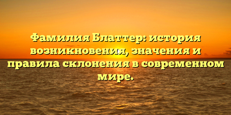 - Фамилия Блаттер: происхождение, значение и правила склонения в наше время — все, что нужно знать!