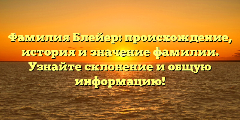 Изучаем происхождение и историю фамилии Блейер: узнайте склонение и основные факты!