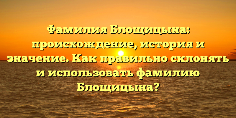- Фамилия Блощицына: происхождение, история и правильное использование.