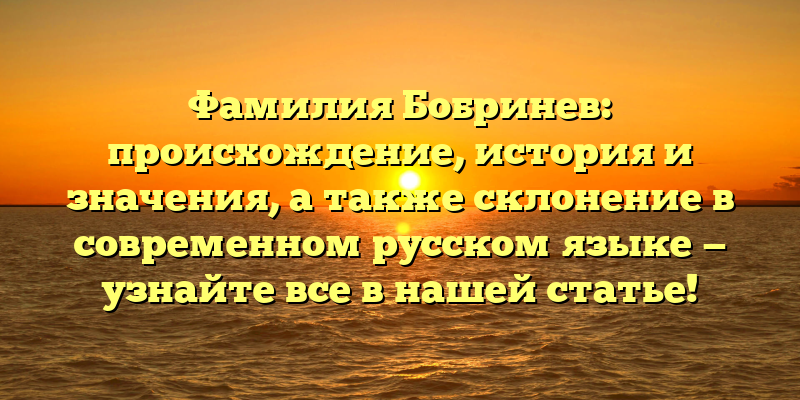 Исследуем фамилию Бобринев: происхождение, история и значения, а также правильное склонение в современном русском языке — узнайте все в нашей статье!