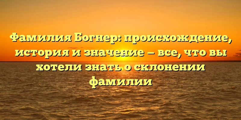 - Раскрываем тайны Фамилии Богнер: История, Происхождение и Значение фамилии в одной статье!