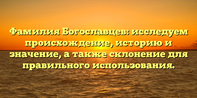 Изучаем Фамилию Богославцев: происхождение, история и значение, а также правильное склонение для использования