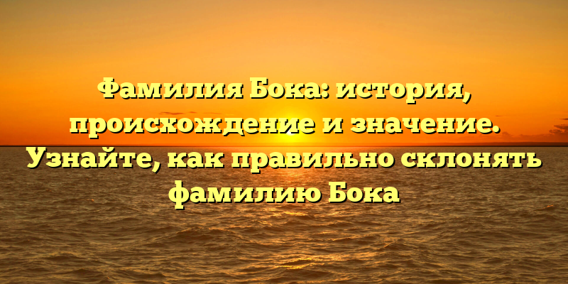 - Фамилия Бока: происхождение, значение и секреты правильного склонения!