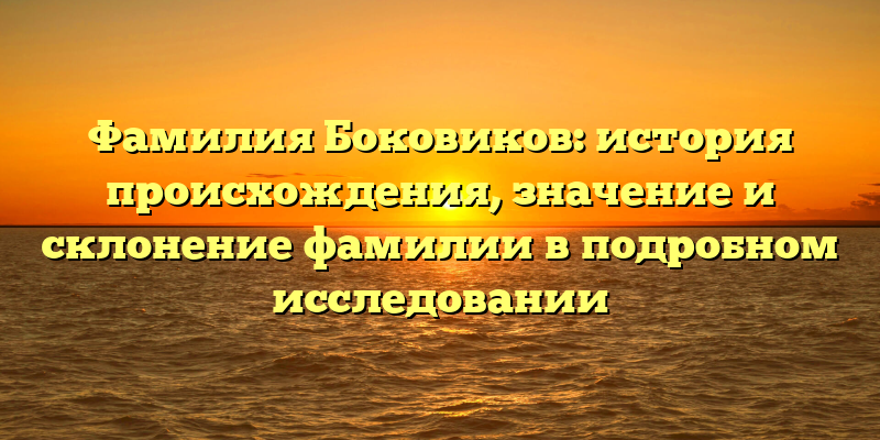 Если вы являетесь представителем семьи Боковиков или интересуетесь историей русских фамилий, то данное исследование будет для вас полезным и познавательным.