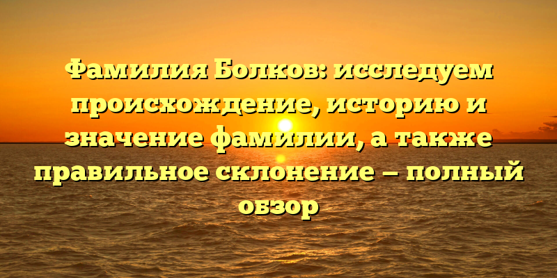 - Раскрываем тайны фамилии Болков: происхождение, история, значение и правильное склонение — полный обзор