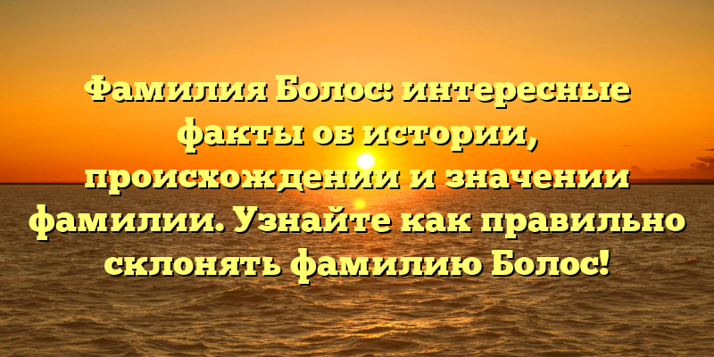 Раскрываем тайны фамилии Болос: происхождение, значение и правила склонения!