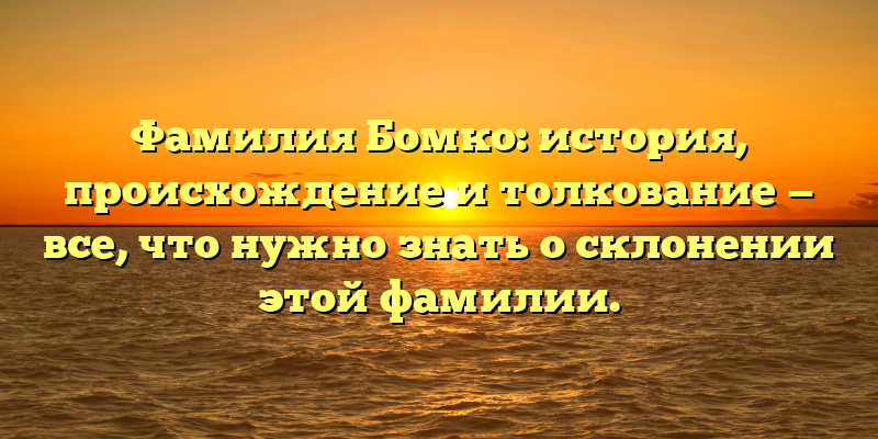- Фамилия Бомко: происхождение, история и склонение – полное руководство для любопытных исследователей