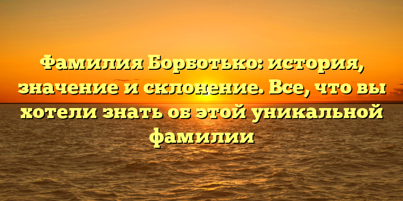 Узнайте всю правду о фамилии Борботько: история, значение и грамматика в одной статье!