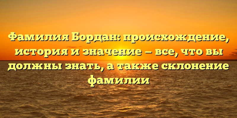 - Фамилия Бордан: исследуем происхождение, историю и значение, а также разбираем склонение