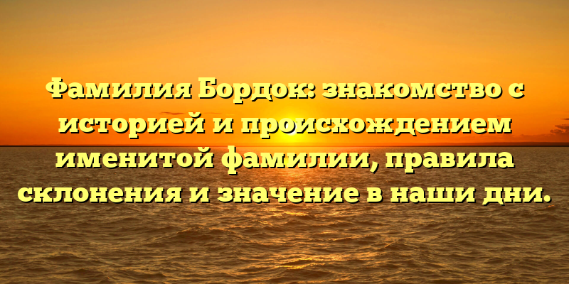 - Фамилия Бордок: происхождение, история и актуальное значение в наши дни