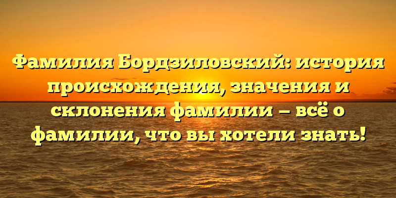 - Фамилия Бордзиловский: происхождение, значения и склонения — узнайте все о своих корнях.