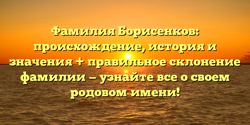 Исследуйте происхождение и историю фамилии Борисенков, познакомьтесь со значениями и научитесь правильному склонению – узнайте больше о своем родовом имени!