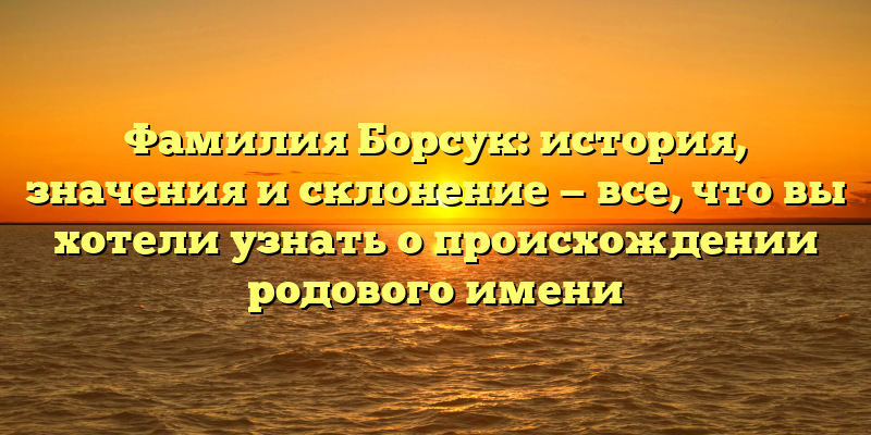 - Фамилия Борсук: происхождение, значения и склонение — исследуем историю родового имени