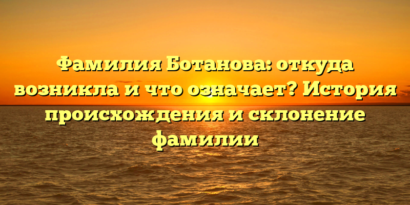 Какую бы фамилию мы не носили, она всегда имеет свойство привлекать внимание и вызывать интерес к своему происхождению. В статье мы рассмотрим фамилию Ботанова и историю ее возникновения.