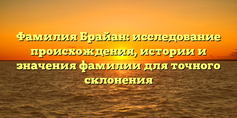 - Изучаем происхождение и значение фамилии Брайан для корректного склонения: история и современность