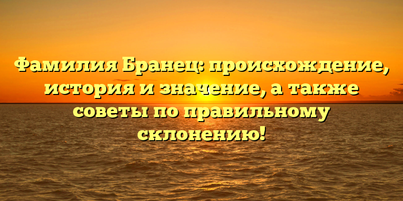 - Фамилия Бранец: всё о происхождении, истории и значении, а также подробные советы по правильному склонению!