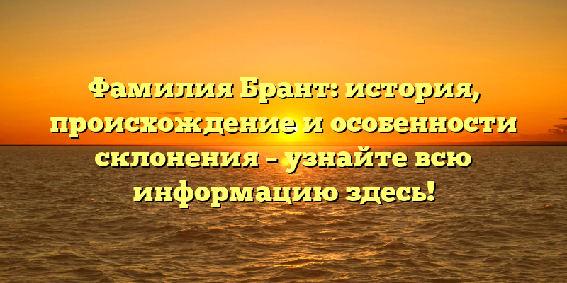 - Фамилия Брант: происхождение, история и секреты правильного склонения — погрузитесь в мир генеалогии!.