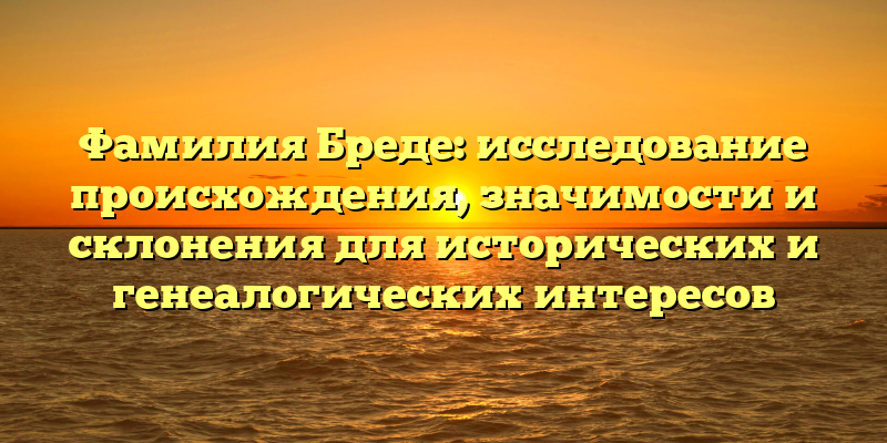 - Откройте тайны происхождения и значимости фамилии Бреде: историческое и генеалогическое исследование для любителей родословных