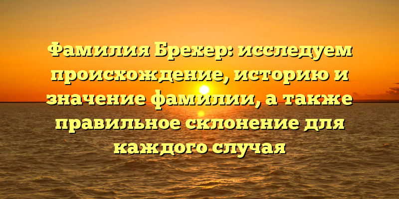 - Фамилия Брехер: происхождение, история и склонение. Все, что нужно знать о значимой фамилии.