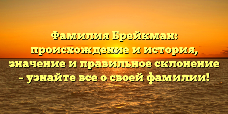 - Раскрываем тайны фамилии Брейкман: происхождение, история и правила склонения, которые вы должны знать.