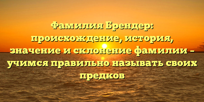 Фамилия Брендер: исследуем происхождение, историю и значение этого имени, а также учимся склонять его правильно