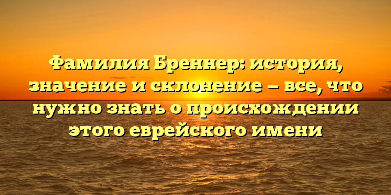 Фамилия Бреннер: происхождение, значение и грамматика — всё, что вы хотели знать об этой еврейской фамилии