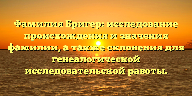 Изучаем происхождение и значения фамилии Бригер: полезные сведения для генеалогических исследований