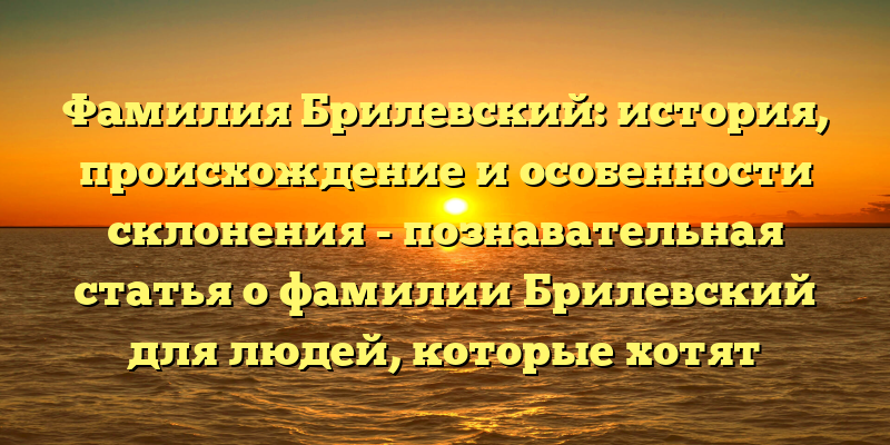 - История и происхождение фамилии Брилевский: узнайте все о своих предках и правильном склонении фамилии