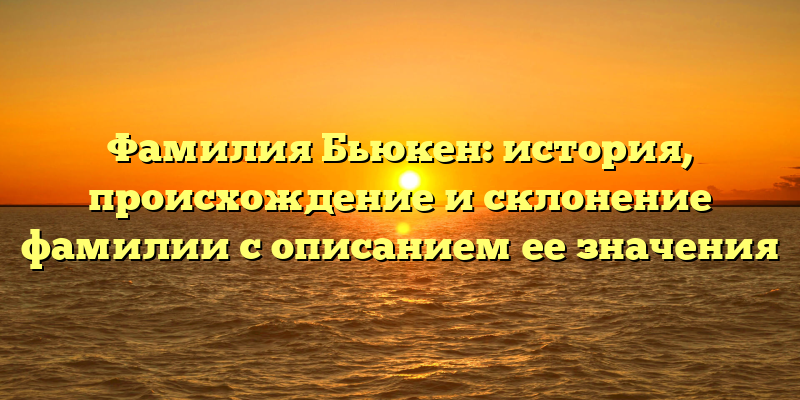 Фамилия Бьюкен имеет германское происхождение и имеет несколько вариантов написания, таких как Beucken, Beuckenius, Buecken и другие. В исторических записях она встречается с давних времен, а ее значение было неоднократно пересмотрено и переосмыслено на протяжении веков.