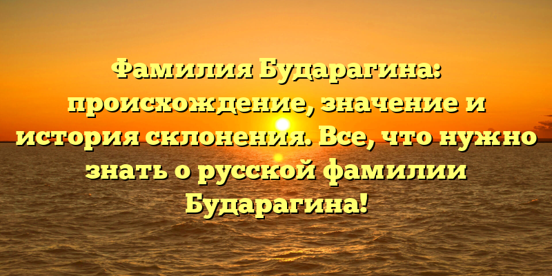Бударагина — одна из самых интересных и загадочных фамилий в русской истории. В этой статье мы расскажем о происхождении, значении и истории склонения этой фамилии. Вы узнаете, почему эта фамилия такая важная и как ее носители оказывали влияние на развитие нашей страны.