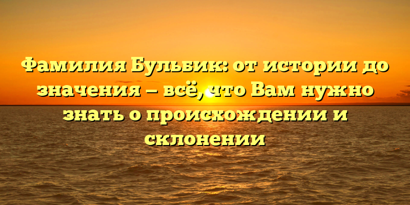 - Фамилия Бульбик: исследуем происхождение и значимость в нашей статье.