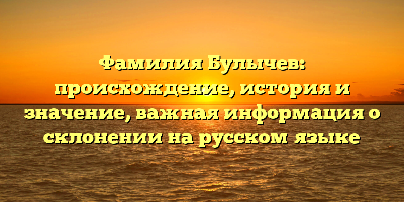 - Фамилия Булычев: происхождение, история и значение, полезная информация о склонении на русском языке для исследователей и генеалогов
