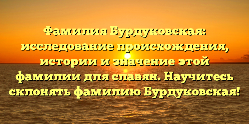 Если вы являетесь носителем фамилии Бурдуковская или интересуетесь историей славянских фамилий — эта статья обязательна к прочтению!