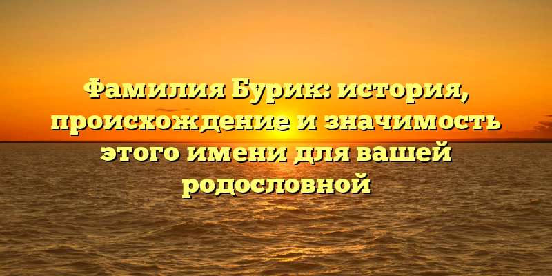 - Фамилия Бурик: исследование происхождения и знакомство со значимыми представителями этого имени для вашей генеалогии